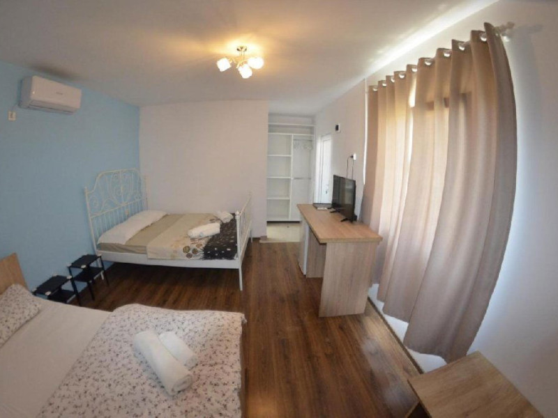 La Tortuga este situata la aproximativ 120 m de plaja Amphora din Vama Veche - sufletul petrecerii atat ziua, cat si noaptea. Nu departe se gasesc si Stuf in stanga, Expirat/ noul Yuva in dreapta. Casa detine parcare gratuita la proprietate, are 6 unitati de cazare oferite spre AZnchiriere, toate cu capacitate maxima de 4 pers/camera, astfel: - o casuta de 24 mp utili, cu baie proprie, frigider, Tv, uscator de par si Ac. Casuta are si bucatarie externa echipata complet la care au acces toti turistii cazati pe proprietate; - 4 camere a cate 22 mp utili fiecare, cu intrare separata, baie proprie, frigider, Tv, uscator de par, Ac si acces pe terasa; - 1 apartament cu doua dormitoare, intrare separata, baie proprie, frigider, Tv, uscator de par, 2 Ac si acces pe terasa. Toate camerele au vedere spre curtea interioara de 1, 000 mp.