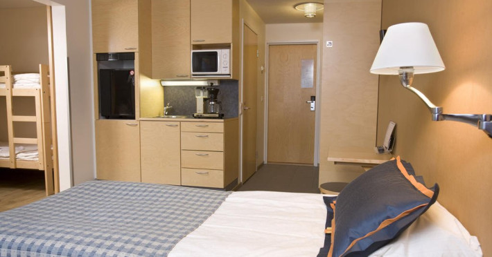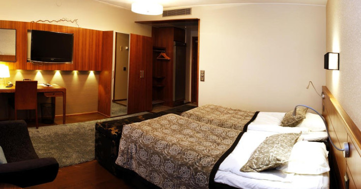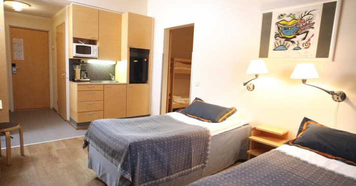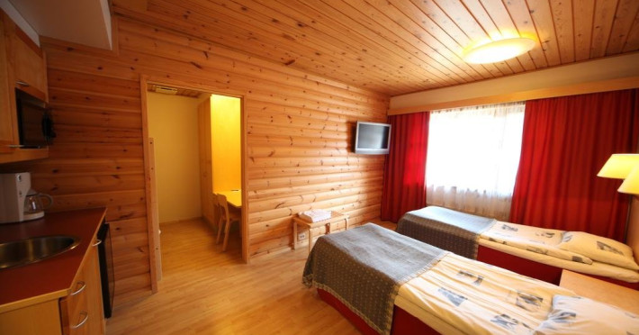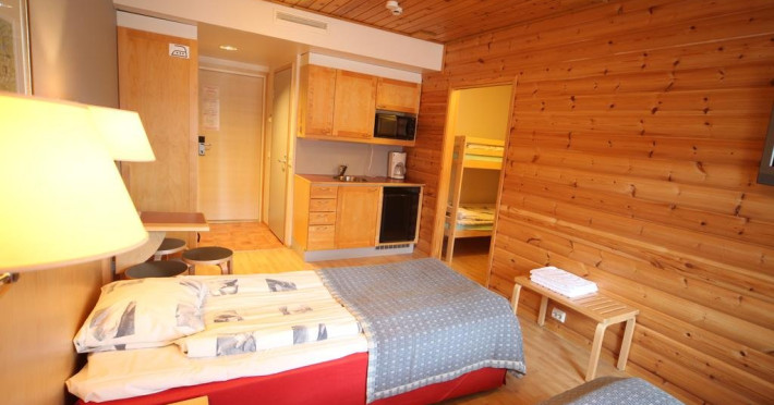 Descriere hotel: Levi Hotel Spa este o alegere perfecta atat pentru familiile cu copii cat si pentru cupluri sau grupuri de prieteni. Localizare: Levi Hotel Spa este amplasat in centrul statiunii Levi, in imediata apropiere a tuturor serviciilor si activitatilor, aproape de partiile de schi. Facilitati: Hotelul pune la dispozitia oaspetilor restaurante, bar, centru Spa, saune, 17 piscine, sala fitness, bowling, spatiu de joaca pentru copii, WiFi gratuit. Camere: Hotelul dispune de 41 camere standard si 125 camere family. Camerele de tip standard (19 mp) sunt dotate cu TV, telefon, seif, fier de calcat, uscator de par, facilitati de preparare ceai, wifi, iar camere de tip family (21-25 mp) sunt dotate cu chicineta utilata, frigider, cuptor cu microunde, facilitati de preparare ceai, TV, telefon, seif, fier de calcat, uscator de par, wifi. Camerele de tip standard au capacitate maxima de 3 persoane, iar camerele family de 2 adulti + 2 copii. Daca sunt doar 2 persoane in camera, se va aloca o camera dubla standard. Pagina web: www.levihotelspa.fi/en/hotel Patutul pentru copii 0-2 ani: aproximativ 30 EUR/sejur (la cerere)