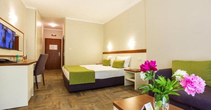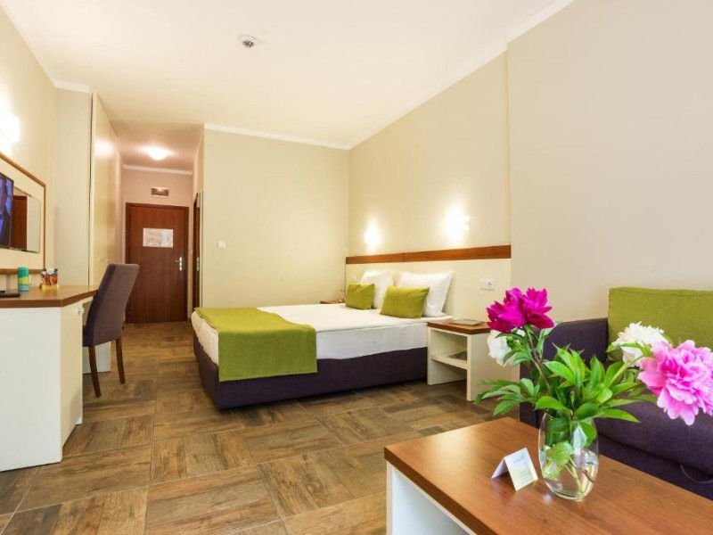 Localizare: Hotelul Ljuljak se afla in statiunea Nisipurile de Aur, la doar 400 de metri de plaja cu nisip, la 1 km de parcul acvatic Aquapolis si la 10 minute de mers pe jos de centrul statiunii. Facilitati hotel: Hotelul pune la dispozitia turistilor piscina, restaurant, bar la piscina, sezlonguri si umbrele de soare, loc de joaca, facilitati de tenis de masa si masa de billiard (contra cost), parcare (contra cost), seif (contra cost). Dotari camere: Camerele sunt dotate cu aer conditionat, zona de relaxare, TV prin satelit, birou, frigider. Site web: http://www.ljuljak.com/