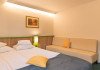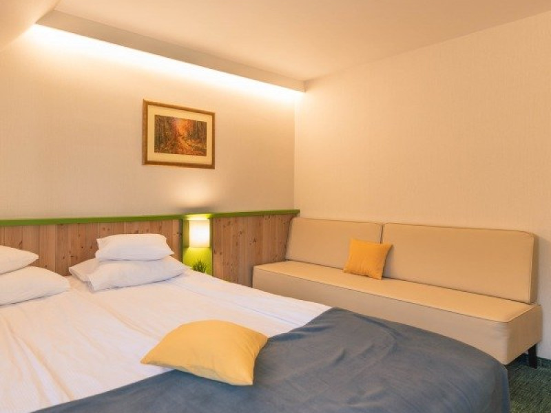 Facilitati copii in camera cu 2 adulti: - unul sau 2 copii intre 0-1.99 ani beneficiaza de gratuitate la cazare si masa, fara pat suplimentar asigurat - un copil intre 2-10.99 ani achita 166 de lei/zi, avand inclus patul suplimentar si serviciile de masa Peste 11 ani sunt considerati adulti si achita tarif intreg. Capacitatea maxima de cazare in dbl srandard 2 adulti si un copil intre 0-10.99 ani, in camera dubla premium 2 adulti si 2 copii intre 0-10.99 ani, sau 3 adulti.