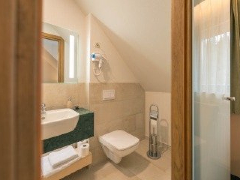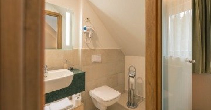 Dotari camere: - camera dubla standard, suprafata de 25 de mp, dispune de TV Lcd, free wifi, baie proprie cu cabina de dus, aer conidtionat, halat de baie, zona de relaxare. Acestea sunt situate la poalele padurii, in Casa de Vanatoare si in Casa nou construita. - camera dubla premium, suprafata de 35 mp, TV lcd, free wifi, baie proprie cu cabina de dus, aer conditionat, halat si papuci de baie, zona de relaxare. Acesta sunt situate in cladirea centrului wellnes.