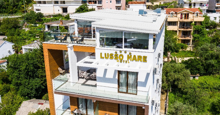 Eleganta si confortul sunt semnele distinctive ale acestei proprietati. Hotelul Lusso Mare garanteaza servicii de inalta calitate si o gama larga de oferte. ________________________________________ Hotel - Receptie, restaurant situat la ultimul etaj, care serveste micul dejun, iar seara serveste preparate a la carte locale si internationale. - Animalele de companie nu sunt permise. Acces gratuit, cu capacitate limitata si fara rezervare prealabila. Taxa de turist platibila local: adulti 1,50 EUR/noapte, copii (12-18 ani) 1 EUR/noapte, copii (pana la 12 ani) 0,50 EUR/noapte. - Wi-Fi gratuit. - Hotelul ofera un total de 30 de camere duble moderne, cu optiunea unui pat suplimentar. Toate camerele sunt dotate cu aer conditionat, TV cu ecran plat si canale prin satelit, minibar, seif si baie privata cu dus si uscator de par. ________________________________________ Localizare Hotelul Lusso Mare s-a deschis in primavara anului 2019 si este situat in Becici, langa Budva - cea mai populara statiune turistica din Muntenegru. Orasul vechi din Budva se afla la 35 de minute de mers pe jos de-a lungul coastei, de-a lungul promenadei din apropiere. Centrul orasului este inima vibranta a orasului, cu numeroase cafenele, restaurante si cluburi. Aeroportul Tivat este la aproximativ 16 km, iar Aeroportul Pofgorica este la aproximativ 65 km. ________________________________________ Plaja Plaja Becici se afla la aproximativ 300 m de hotel. Sezlongurile si umbrelele de pe plaja sunt disponibile contra unei taxe suplimentare (aproximativ 10 EUR/set). ________________________________________ Tipuri de mancare si mese: Mic dejun tip bufet ________________________________________ Program sportiv si de divertisment Hotelul nu ofera divertisment. Locatia sa incurajeaza drumetiile independente si recreerea activa. Sporturi nautice sunt disponibile pe coasta. ________________________________________ Camere Camerele sunt dotate cu: -Balcon/terasa - Baie: Cada si/sau dus | Uscator de par | Articole de toaleta | Halate de baie | Slapi - Vedere: imprejurimi. - Facilitati camera: Aer conditionat individual | Seif | Minibar | Telefon | TV prin satelit | Fierbator | Wi-Fi ________________________________________ Pagina web: https://lussomare.me/