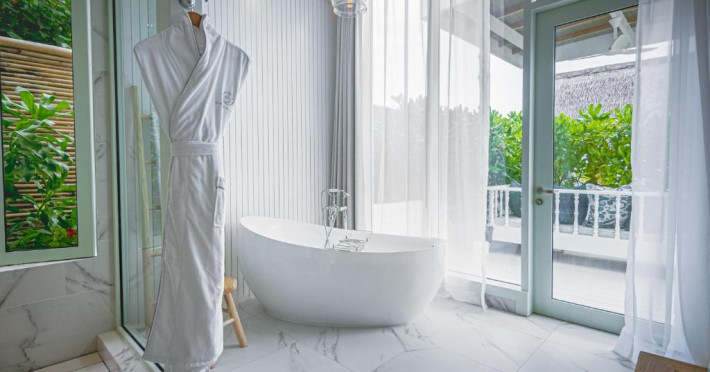Inspirat de casele tradiționale ale insulelor Maldive și de designul modern opulent, interiorul atent conceput, decorat cu ceramică celadon elegantă și oferind o vedere impresionantă, imbină fiecare aspect pentru a crea un farmec aparte al vilelor Sunrise cu piscină - pe plajă și suitelor Sunset Beach cu piscină.