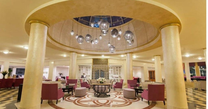 Classified 4 stars and part of the Marhaba Resorts, referenced by the prestigious chain Marhaba Hotels Marhaba club is fully dedicated to anticipating your needs and meeting your expectations. Located in the heart of the tourist area of the city of Sousse, at : 10 minutes from downtown Sousse, 10 minutes from Port el Kantaoui and golf course, 20 minutes from Skanes-Monastir airport, 40 minutes from Enfidha airport and 90 minutes from Tunis airport -Carthage. Rooms : 274 rooms 4 luxurious suites 4 levels served by two lifts, free Wifi in all the complex (rooms, reception, pool beach.) Air conditioning, Phone, Mini-fridge (free), Satellite TV with international channels, WIFI connection, Bathroom and shower, Balcony (sea view, pool view, park view). Restaurants & Bars : The Main Restaurant : In an elegant contemporary and elegant, the Chef puts all his talent to satisfy you. A la carte restaurant BOCCA BEACH : Fine cuisine in a heavenly setting (paid). Snack all inclusive pool Palmeraie: In a green setting and by the pool to cool off and enjoy our light buffet. (Summer season) The Bar Pool Club : A perfect place to relax in a soothing setting The Lobby Bar : A perfect place to relax in a soothing setting The Moorish Coffee Safsaf: A 100% local style offering regional flavors in a traditional setting (paid). Activities : Sports activities by the pool and beach (petanque, darts, water polo, mini golf, mini football, dance classes, beach volleyball. Varied evenings on the terrace (in summer) and the reception halls (in winter soft animation) (Cabarets shows, big shows, participative games, live music, fakir, Tunisian folklore, oriental dancer, karaoke). Paid activities: Motorized water sports wellness center (massages) Other Activities and Services : Swimming pool Club Relax pool with soft animation for those who seek to enjoy their stay in the quiet Swimming pool Palmeraie with toboggan (Animated Pool) Animation all day around the pool Three toboggan, open from 10:00 to 12:00 and from 15:00 to 17:00. Indoor Swimming Pool (Heated in Winter): (Towels & Deckchairs Pool & Free Beach) 6 tennis courts Court for mini golf Court for pAStanque Souvenir shop For kids : swimming pool and toboggan, playground, animation for kids, mini disco- a baby coat and baby chairs meals for kids (on request).
