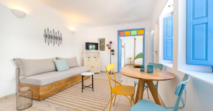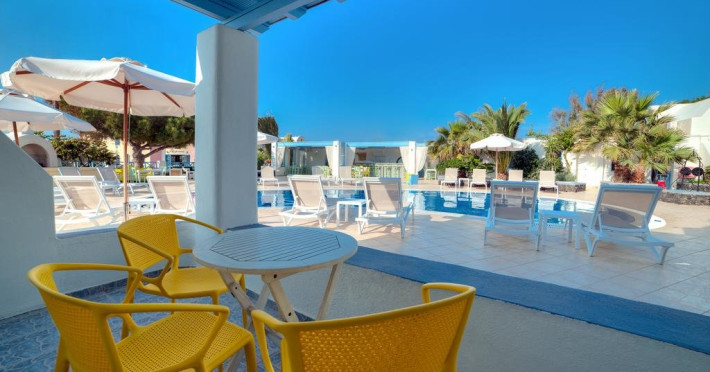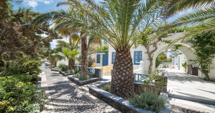 Descriere HOTEL MARILLIA VILLAGE: Peretii de un galben deschis si gradinile pline de culoare care ies in evidenta va vor inveseli si relaxa. Daca sunteti in cautarea unei experiente autentice din Santorini, Marillia Village va va fermeca cu designul traditional egeean. Hotelul are simplitatea decorului traditional cicladic si o atmosfera relaxanta care reflecta stilul de viata al insulei.