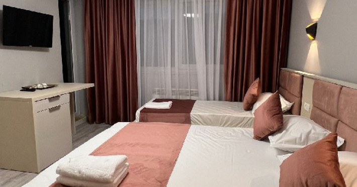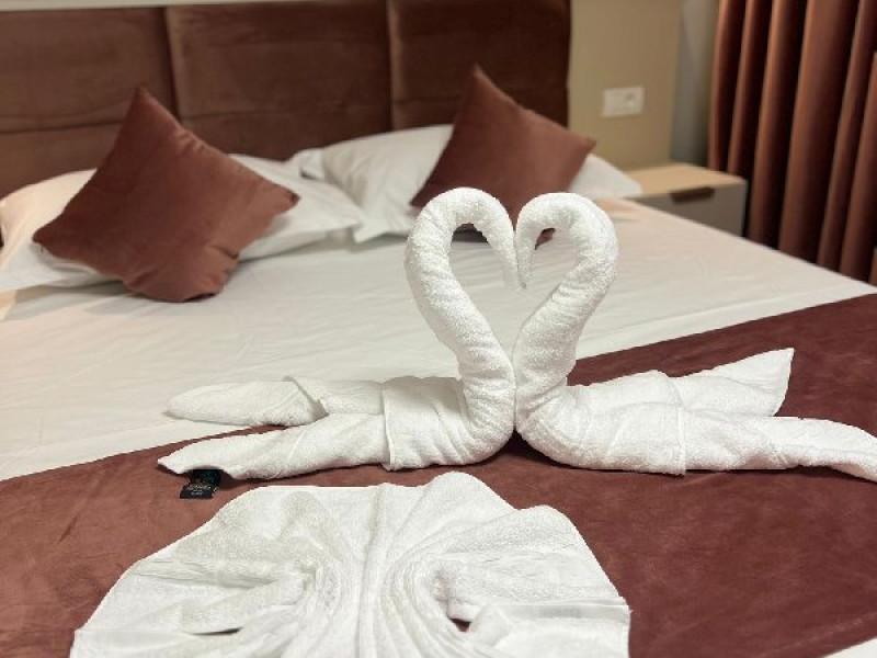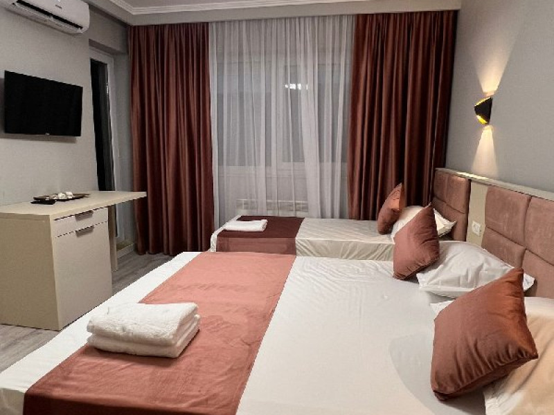 Dotari camere: TV Led, minifrigider, aer conditionat, uscator de par si terasa proprie cu scaune si masa. Unele camere au balcon.