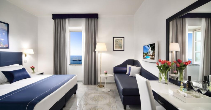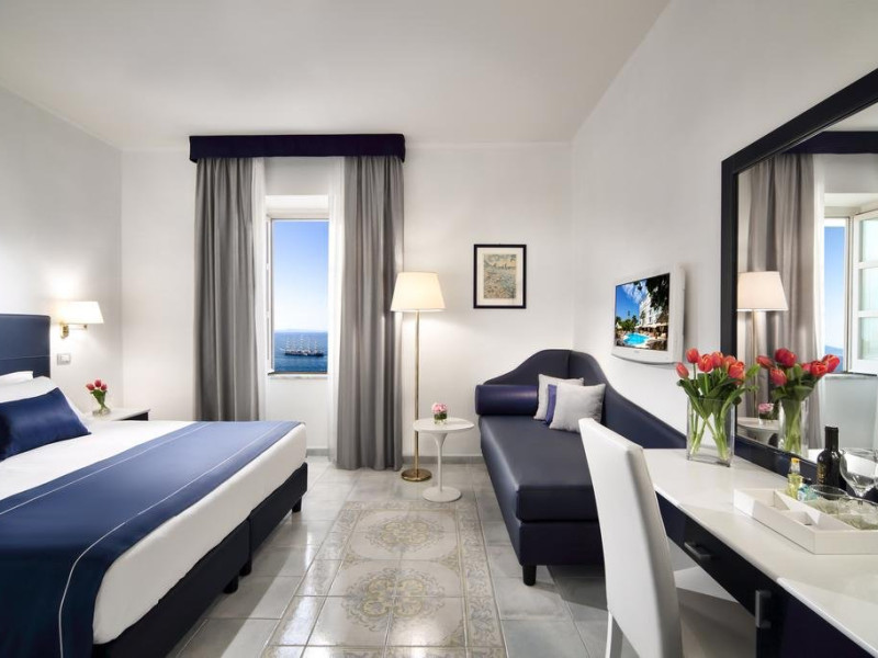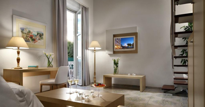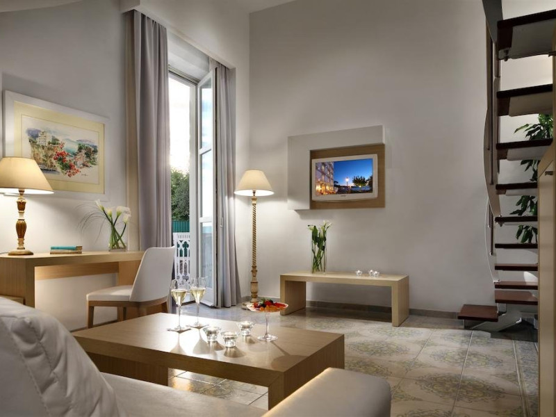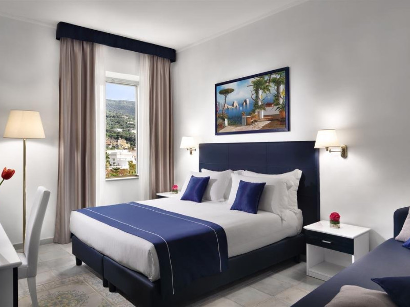 Descriere: Hotelul Mediterraneo ofera magia unui loc care este cu adevarat unic, oferindu-le oaspetilor vacante relaxante intr-un cadru prietenos. Localizare: Hotelul este la 1.2 km de centrul orasului Sorrento. Facilitati hotel: gradina, terasa, picina, jacuzzi, restaurant, snack bar, bar, wi-fi, parcare, divertisment de seara, club de noapte, aer conditionat, room service Dotari camera: dus, aer conditionat, TV LCD, wi-fi, telefon, seif, minibar, uscator de par Website: http://www.mediterraneosorrento.com/