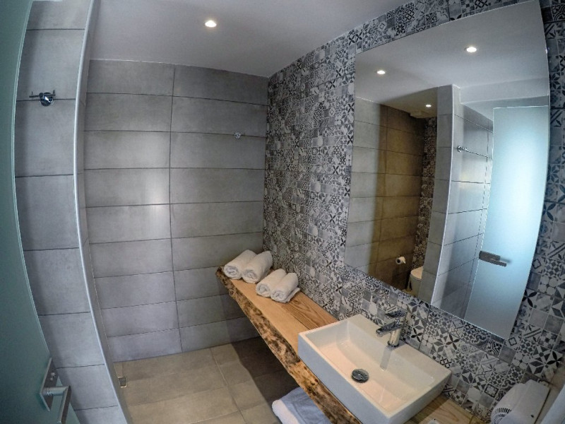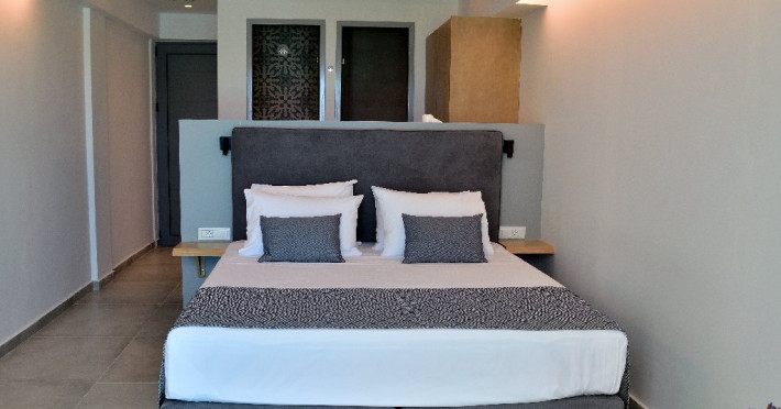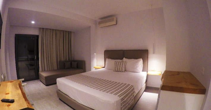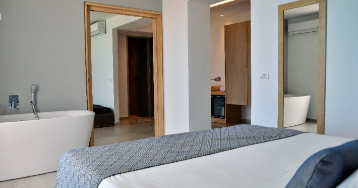 Dotari camere: Hotelul Meliti dispune de 42 de unitati de cazare intre 18 si 34 mp. Toate sunt dotate cu aer conditionat, wi-fi, telefon, seif (cu plata, 10 eruro/saptamana), TV satelit, frigider, baie cu dus, uscator de par, halat si papuci, balcon/terasa.