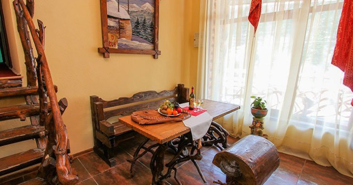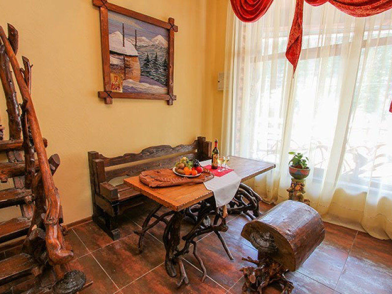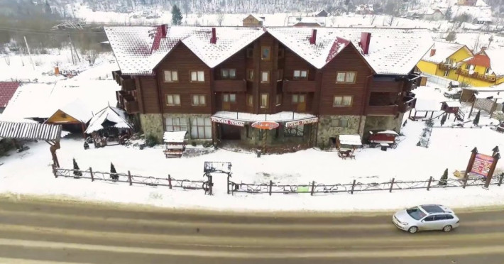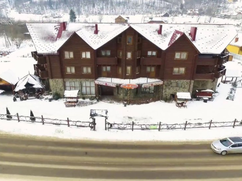 Localizare: In satul Mykulychyn, la 21 km de Bukovel. Descriere: Casa cu trei etaje din lemn si piatra: hotel pentru 60 de persoane, la parter exista o receptie, un restaurant si o sauna cu piscina, la primul etaj exista o camera de zi. Facilitati hotel: Restaurant a la carte, facilitati de calcat si gratar, internet Wi-Fi, sauna pentru 7-9 persoane cu piscina (5 m, cu incalzire) contra cost, tenis de masa, teren de sport (volei, baschet). Dotari camere: TV, internet Wi-Fi gratuit, mocheta pe jos, balcon, baie cu dus. camerele duble au paturi twin. Cele 3 apartamente sunt dotate cu un dormitor cu pat matrimonial si o camera cu canapea. Acestea au in plus un minifrigider, ceainic si uscator de par. Web: http://hotel-milenium.com.ua/