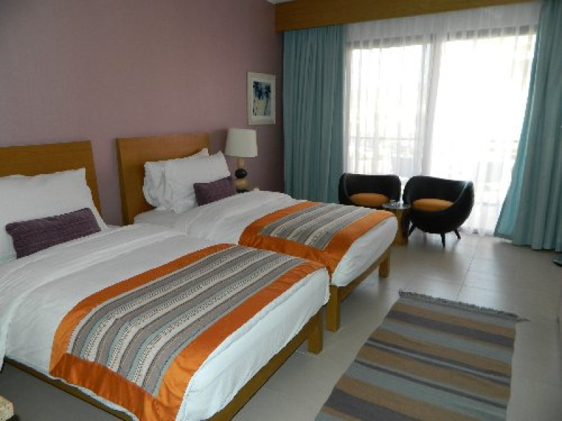 Informatii generale: este un resort cu un stil unic situat pe malul in zona Tala Bay, o oaza de liniste si calm pe malul marii dar avand toate dotarile. Localizare: Centrul orasului Aqaba este la 15 minute de mers cu masina iar aeroportul se afla la 20 de minute de mers cu masina, iar complexul asigura parcare privata gratuita Dotari camere: 306 camere din care 145 camere family sunt amenajate in culori luminoase cu un design modern. Toate camerele au aer conditionat, televizor cu ecran plat, cafea si ceai, telefon, wifi gratuit, seif, minibar cu apa si sucuri gratuite, balcon cu masa si scaune, baie cu dus si uscator de par. Camerele standard au vedere la munte sau la gradina, camerele superior au vedere la piscina si vedere partiala la mare iar camerele deluxe au vedere la mare. Camerele family au doua dormitoare cu usa intre ele. Facilitati hotel: zona de piscine are 3000 mp, o piscina stil laguna cu cascade, lazy river, echipa de aminatie, fotbal pe plaja, volei, badminton, sporturi de apa (jet ski, water ski, scuba diving), centru de scufundari, shuttle bus gratuit catre Aqaba, Centru spa si wellness cu o suprafata de 1200 mp (sauna, jacuzzi, piscina interioara, zona de tratamente si masaj) , Internet wifi gratuit in toata zonele, restaurant principal cu mese buffet, cine tematice in fiecare seara cu muzica live, restaurant a la carte italian, terasa, restaurant la piscina, bar la piscina, longe bar, terasa cu specific arabesc, loc de joaca pentru copii, parcare gratuita, centru de rent-a-car, exchange. Clientii cazati la acest hotel pot folosi facilitatile hotelului Moevenpick Aqaba aflat in centrul orasului: piscine, plaja privata, restaurante, terase. Transferul intre hoteluri este gratuit. Plaja: : plaja privata lata cu nisip fin, cu umbrelute si sezlonguri, diverse activitati pe plaja. Tip masa: demipensiune / pensiune complete (cu supliment) Pagina web: http://www.moevenpick-hotels.com/en/middle-east/jordan/aqaba/resort-aqaba-tala-bay/overview