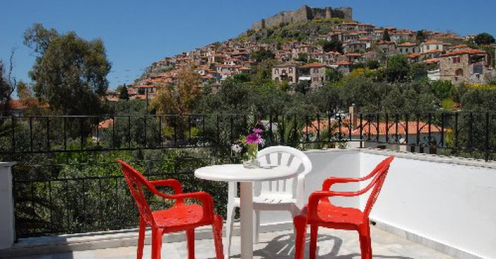 Localizare : Situat la intrarea in satul Molyvos,acestea se afla intr-un peisaj verde. Statia de autobus este la 100 m iar plaja publica la 300 m. In apropiere se regasesc golfurile si plajele superbe din zonele Eftalou, Petra si Anaxos. In timpul luniilor de vara se ofera un transfer cu autobuzul local intre satele si plajele Eftalou (plaja cu pietris), Molyvos(plaja cu petris), Petra (plaja cu nisip ) si Anaxos (plaja cu nisip).