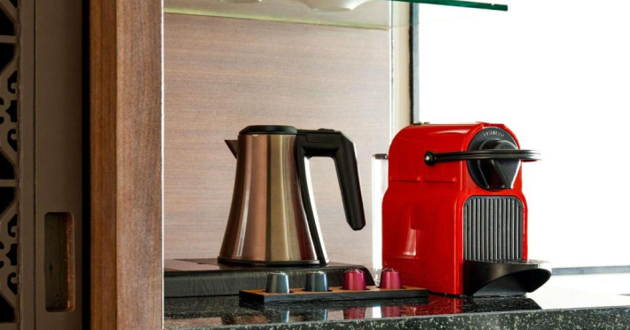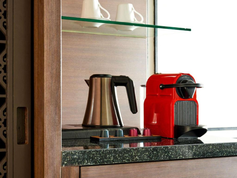 Facilități cameră: minibar, aer condiționat, seif, halat de baie, papuci de casă, uscător de păr, facilități pentru prepararea ceaiului și a cafelei, zonă de relaxare, birou, televizor LCD cu canale prin satelit, balcon, internet Wi-fi.