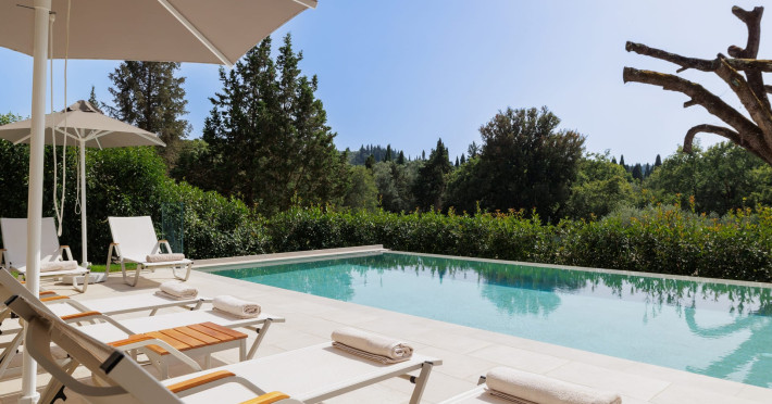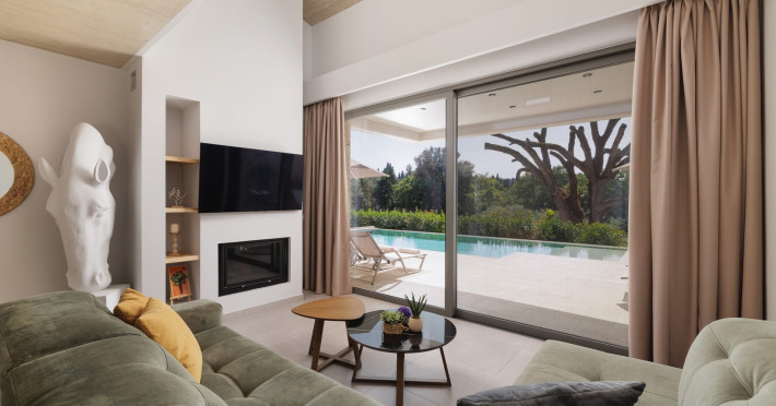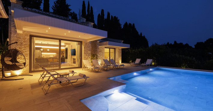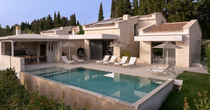A magnificent and authentic villa, a really well designed space 250sq meters ,with private pool and high privacy, in the perfect location for exploring the beauties of Corfu and with easy access to the most famous beaches.
