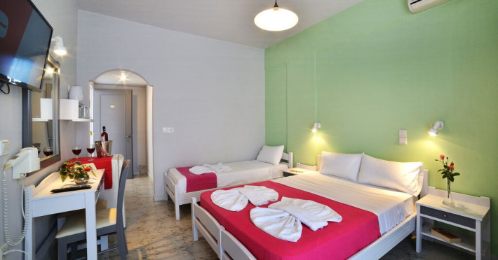 Localizare: Hotelul Nereides Hotel, partial renovat in 2021, este un hotel de 3 stele situat intr-o zona linistita, la doar 400 m de o plaja cu nisip si pietricele, in centrul localitatii Kolymbari si la aproximativ 42 km de Aeroportul International din Chania. Dotari camere: Toate unitatile de cazare au fost partial renovate in 2021 si ofera standard aer conditionat (cost suplimentar), Wi-Fi gratuit, telefon, seif (contra cost), TV LCD, mini frigider, fier si masa de calcat (la cerere), uscator de par, produse de toaleta, balcon/terasa. Tipuri de camere: Camera dubla: aproximativ 17 mp, maxim 2 persoane (un pat dublu sau paturi twin). Camera cvadrupla: aproximativ 20 mp, maxim 4 persoane (un pat dublu sau paturi twin si 2 paturi suplimentare). Studio: aproximativ 17 mp, maxim 2 persoane (un pat dublu sau paturi twin), plus chicineta (plite, fierbator electric, ustensile de bucatarie). Facilitati hotel: restaurant a la carte cu terasa, snack bar langa piscina, Wi-Fi gratuit in zonele publice, piscina exterioara, sezlonguri si umbrele gratuite la piscina (contra cost la plaja publica), prosoape pentru piscina (cu depozit), terasa insorita, gradina si parcare gratuita. Facilitati pentru copii: Patuturi pentru bebelusi (la cerere, gratuit), scaune de masa (la cerere), piscina separata pentru copii si loc de joaca in aer liber. Divertisment: Seara greceasca (contra cost). Sport si wellness: Tenis de masa (gratuit), mini-golf (gratuit). Pentru anumite facilitati din hotel sau din camera, hotelierul poate solicita taxe suplimentare. In momentul sosirii la hotel solicitati receptionerului sa va informeze cu exactitate asupra lor. Taxa de statiune obligatorie - se plateste cash la receptie.