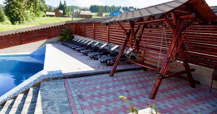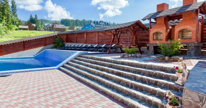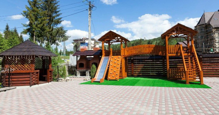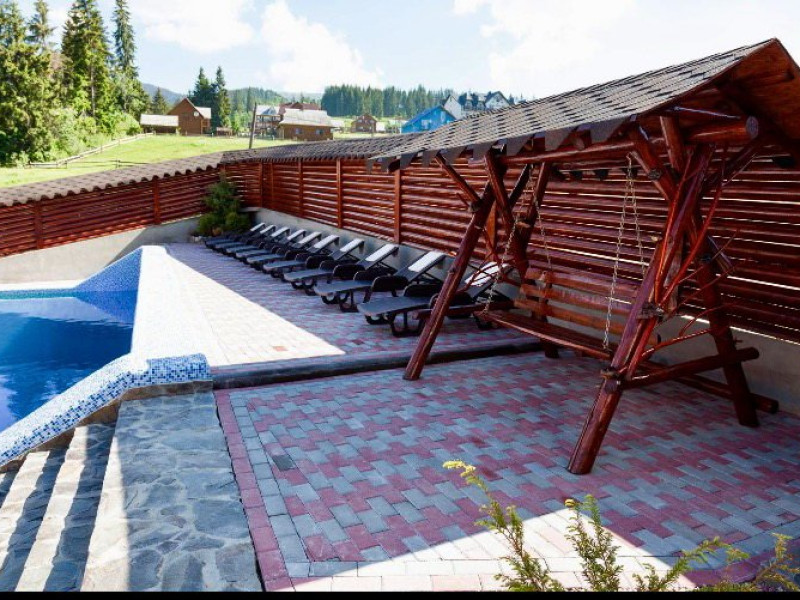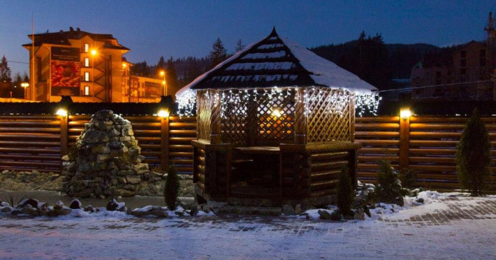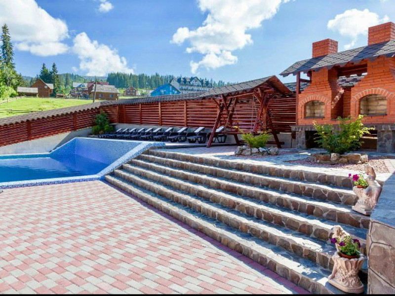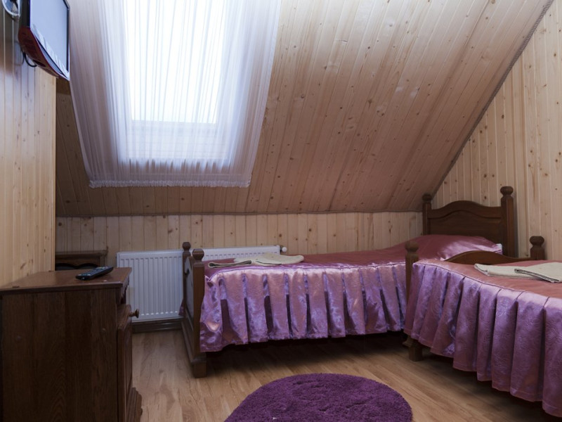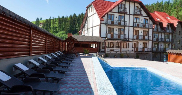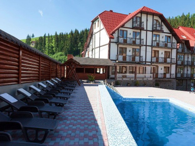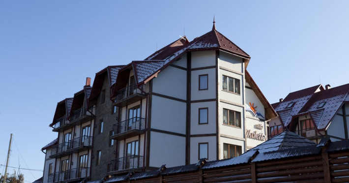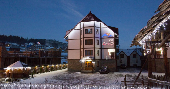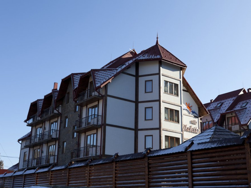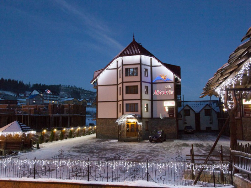 Localizare: In moderna staiune ucrainiana de schi Bukovel. Descriere: Construita in 2009, vila ofera clientilor sai 56 camere confortabile: 3 camere - clasa 'Superior Suite' 21 camere - 'Junior Suite', 15 camere - 'Standard', 14 camere - clasa 'pod' Facilitati hotel: restaurant, bazin interior (maxim 6 persoane), sauna, piscina exterioara, zona barbeque, loc de joaca pentru copii. Dotari camere: pat dublu, un pat dublu rabatabil, TV, masa cu scaune, baie cu dus, produse de igiena. Web: https://nikoletta.biz/ro/