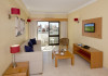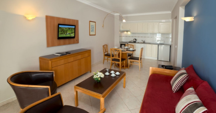 There are 34 studio rooms sleeping one to two persons and 92 one bedroom apartments sleeping one to four. Each room offers: microwave, electric hobs, toaster, electric kettle, fridge, sofa bed, satellite television, bathroom with bath and shower, balcony with avenue or pool view.