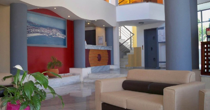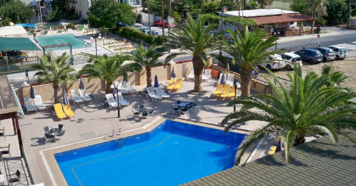Descriere: Hotelul Palladion are 79 de camere si este situat in statiunea Adelianos Kampos, langa orasul Rethymno. Localizare: La 150 m de plaja, in centrul statiunii Adelianos Kampos, la 6 km de Rethymno, la 75 km de aeroportul din Chania si la 76 km de aeroportul din Heraklion. Plaja: La 150 m este plaja nisipoasa cu intrare lina in mare. Sezlongurile si umbrelele sunt disponibile contra cost. Sporturi acvatice cu plata. Dotari camere: Cele 79 de camere sunt de 3 categorii: camere single de aprox. 10 mp (max 1 pax), camere duble de 14 mp (max 2 pax) si camere triple de 17 mp (max 2+1 pax). Toate camerele sunt dotate cu aer conditionat (gratuit), acces interent WiFi (gratuit), telefon, seif ( cu plata, 10 euro/saptamana), TV satelit, frigider, baie cu dus, uscator, balcon. Facilitati hotel: receptie 24 de ore, salon cu terasa, restaurant cu terasa, cafe-bar, sala cu dusuri pentru plecarile la ore tarzii, sala vizionare TV, wi-fi gratuit in toate zonele hotelului, biblioteca, piscina (08:00-20:00), terasa, sezlonguri si umbrele gratuite la piscina si cu plata pe plaja), dus la piscina, gradina, parking, punct de prim ajutor, doctor ( la cerere, cu plata). Facilitati pentru copii: pat pentru copii mici (la cerere, gratuit), scaune speciale (la cerere, gratuit), loc de joaca. Activitati: sporturi acvatice (cu plata), seri folclorice cu muzica si dans (ocazional), karaoke (ocazional), live music (ocazional). Clasificare oficiala: 2 stele Pagina web: http://www.hotel-palladion.gr/ Pentru anumite facilitati din hotel sau din camera, hotelierul poate solicita taxe suplimentare. In momentul sosirii la hotel solicitati receptionerului sa va informeze cu exactitate asupra lor. Taxa de statiune obligatorie - se plateste la receptie.