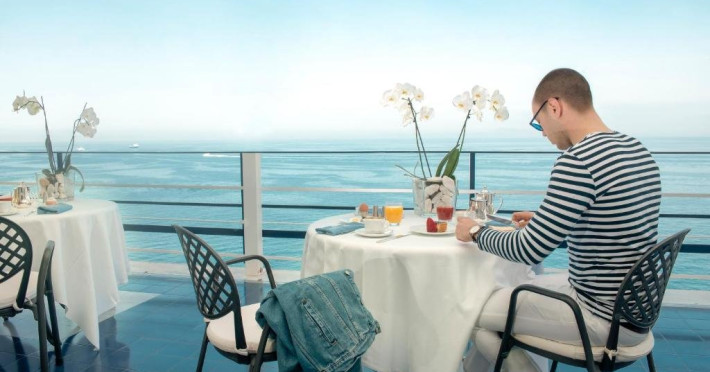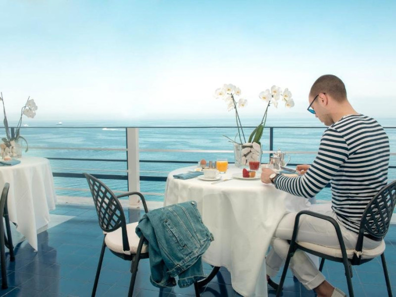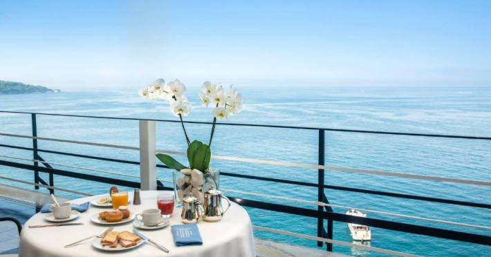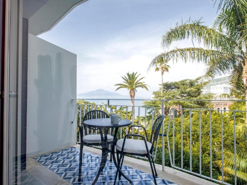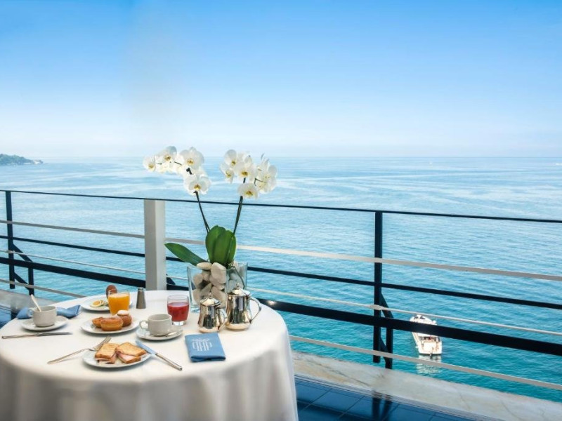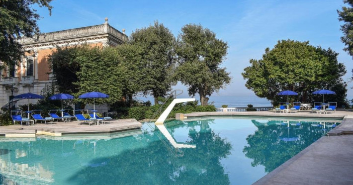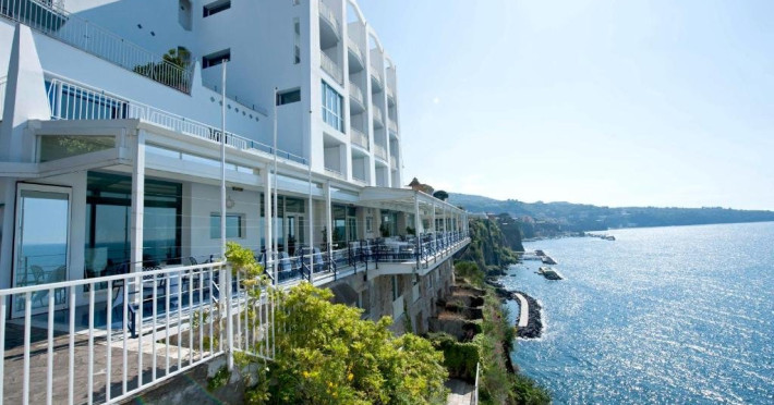 Descriere: Hotelul este situat pe o stanca, inconjurat de un parc natural ce se intinde pe 27.000 mp, cu vedere panoramica la golful Napoli. Localizare: Este situat la 1,5 km de centrul orasului Sorrento si la 1,8 km de portul Marina Piccola. Un serviciu de transport gratuit este disponibil la cerere, dupa un program stabilit. Facilitati hotel: centru wellness, centru fitness, piscina cu apa de mare, plaja privata cu acces direct la hotel prin lift/scari, restaurant, terasa restaurant pe plaja, bar, parcare (cu plata), wi-fi, parc national cu o suprafata de 27.000 mp. Dotari camera: Camerele pastreaza designul original si decorul in stil contemporan realizat de arhitectul italian Gio Ponti. Dispune de 96 de camere dotate cu baie proprie, uscator de par, aer conditionat, wi-fi gratuit, internet prin cablu (contra cost), minibar (contra cost), televizor LCD, balcon.