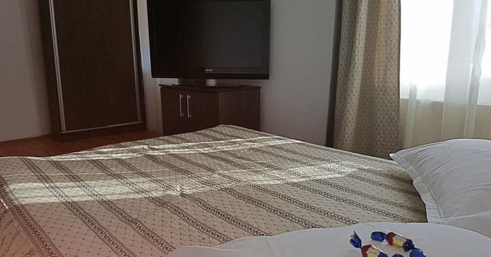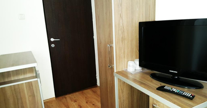 Camerele au TV cu ecran plat cu canale prin satelit cu bai private dotate cu dus sau cada.