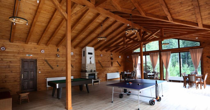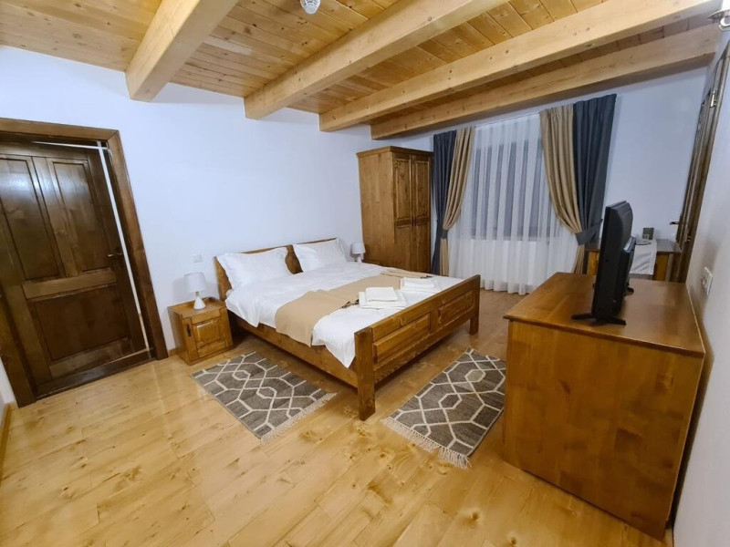 Pensiunea Popas in Apuseni din localitatea Rachitele, judetul Cluj, poate acomoda maxim 24 de persoane in 4 camere duble si 4 apartamente. Dispune si de living foarte spatios, ciubar, loc pentru foc de tabara, masa de tenis, masa de biliard.Se inchiriaza doar integral pentru minim 20 persoane Tariful pentru Revelion este calculat pentru 20 de persoane si include pensiune completa. Pentru fiecare persoana in plus pana la maximul de 24 se achita 1550 RON/persoana/sejur 3 nopti cu pensiune completa.