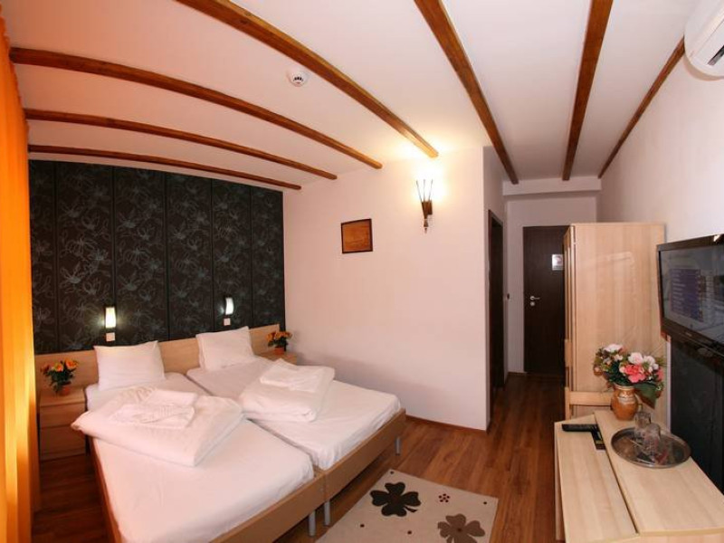 10 camere duble (twin room) 2 camere triple 2 junior suite 1 apartament cu 2 camere 8 camere matrimoniale (double) toate camerele sunt dotate cu televizor, baie proprie cu dus, incalzire centrala, apa calda si rece permanent salon restaurant cu 90 locuri sala de conferinta 60 pers. (flipchart, video proiector, ecran) terasa acoperita cu 40 de locuri terasa descoperita cu 20 de locuri parcare proprie cu 20 locuri o mica plaja cu sezlonguri ponton pentru agrement nautic si pescuit salupa de agrement 6 persoane banana de 6 persoane schi nautic & tubing barca de croaziera cu motor (12 persoane)