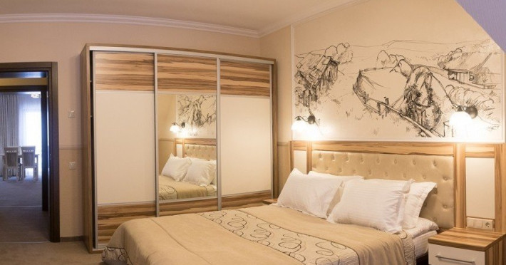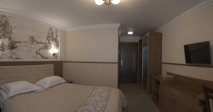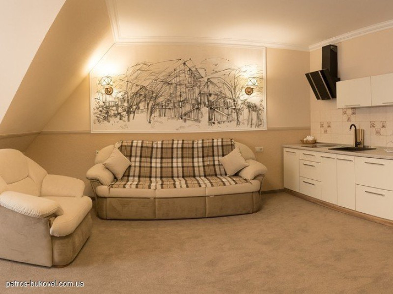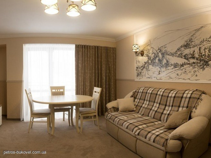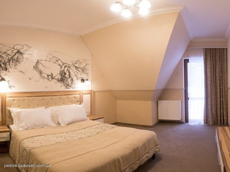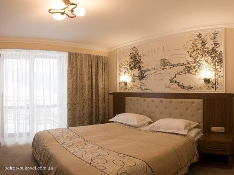 Localizare: Hotelul Petros ofera cazare in Bukovel, la 100 de metri de Vityag 5 Facilitati hotel: Terasa, camera depozitare, gratar, internet Wi-Fi, inchiriere biciclete si parcare gratuita. Micul dejun se poate servi in restaurantul hotelului Amstel, legatura facandu-se printr-un coridor intre cele 2 hoteluri. Dotari camere: Dubla Semi-suite +: 1 camera spatioasa de 18 mp, dotata cu un pat dublu sau doua paturi twin, internet Wi-Fi, TV LCD, seif, mini-bar, uscator de par, halat de baie, papuci, baie cu dus, balcon. Apartament: 2 camere, 51 mp, o camera cu pat matrimonial si o sufragerie cu un semineu si chicineta complet echipata cu aragaz, ceainic, ustensile de gatit, cuptor cu microunde, frigider. Internet Wi-Fi, TV LCD, seif, mini-bar, uscator de par, halat de baie, papuci, baie cu dus, 2 balcoane. Web: www.petros-bukovel.com.ua