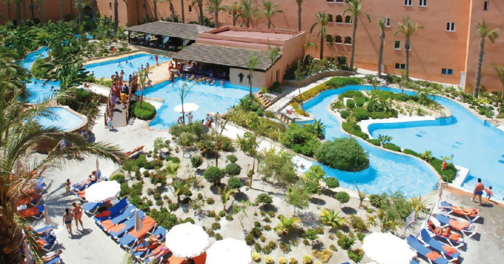 Descriere HOTEL PLAYACALIDA: Hotelul decorat in stil arab este situat in Almunecar, pe malul marii si cu acces direct la plaj. Acest hotel este ideal pentru familii, deoarece dispune de o multime de facilitati printe care amintim o piscin tematic in form de rau cu tobogane si jacuzzi, de asemenea si o piscina infinity cu vedere la coasta Almunecar.