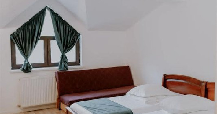 DOTARI CAMERE: Camera dubla cu pat matrimonial, dotata cu mobilier din lemn masiv, baie proprie cu dus, dressing, uscator par, TV, internet, balcon cu vedere spre padure sau munte. Camera tripla, cu pat matrimonial dublu si un pat de o persoana, dotata cu mobilier din lemn masiv, baie proprie cu dus, dressing, uscator par, TV, internet, balcon cu vedere spre padure sau munte.