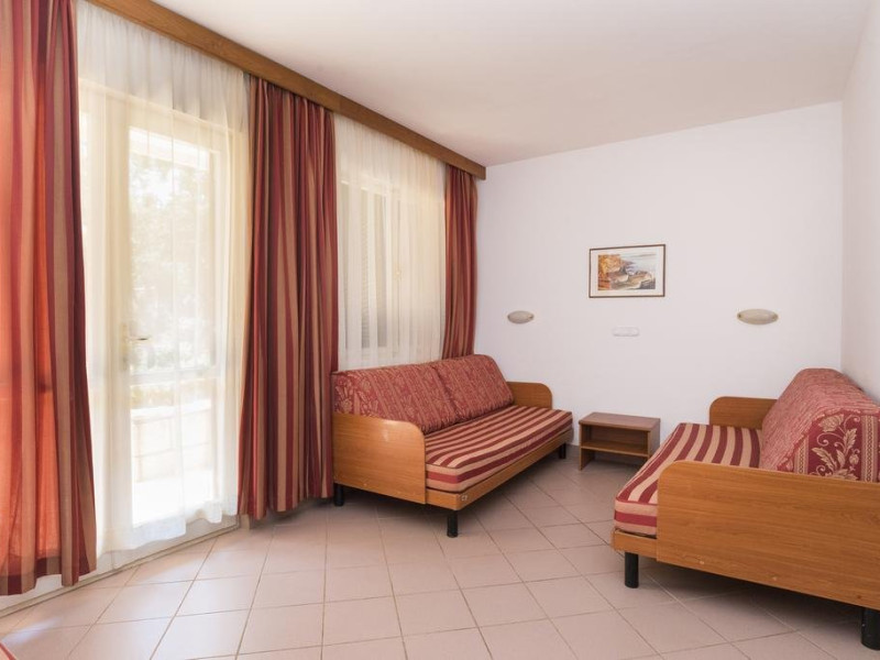 Localizare: in satul turistic Katoro, langa plaja din Umag si la 3.5 Km de farul Savudrian. La 16 Km se afla Potrul Novigrad. Facilitati hotel: o cafenea si un magazin alimentar, piscina cu zona pentru copii, bar, restaurant, club pentru copii, contra cost Wi-Fi in zonele publice (aproximativ 40 HRK), parcare gratuita in limita locurilor disponiobile, magazin de cadouri si chiosc de ziare, facilitati barbeque si punct de prim ajutor. Dotari camere: 620 apartamente si 66 bungalouri (pentru 2 - 5 persoane): TV, telefon, seif contra cost, baie cu dus sau cada, chicineta si minibar, terasa sau balcon, camere adaptate pentru nevoile persoanelor cu handicap. Alte informatii: Check-inul incepe la ora 15.00, iar check-outul este la ora 10.00, Hotelul accepta contra cost animale de companie (16 euro/zi). Tip masa: Mic dejun si/sau cina.