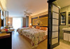 The hotel Radisson Blu Zaffron Resort (adults only) lies approx. 100 m from the Kamari, a shingle beach. At the beach are sun loungers free of charge available. The nearest town is Fira. A supermarket and other shopping facilities can be reached after 100 m. It is only 100 m from the hotel to the nearest bars and restaurants. Also the nearest disco is around 100 m away. Further entertainment facilities such as a cinema are approx. 500 m away. The following attractions can be reached from the hotel: Ancient Thira. For mobility there is a bus stop (approx. 50 m away). For medical treatment in emergencies there is a hospital around 10 km away. The hotel and airport are linked by a shuttle (for a fee).