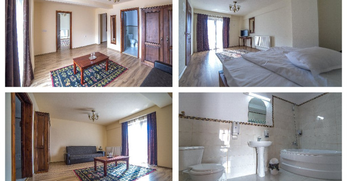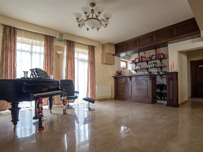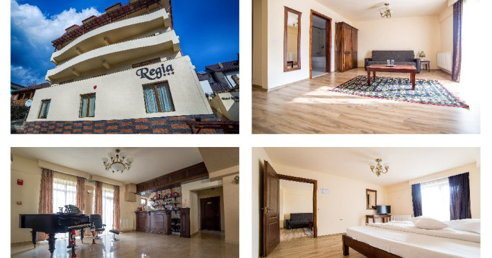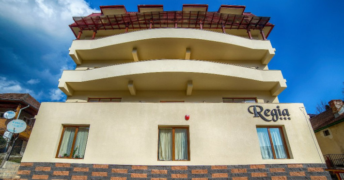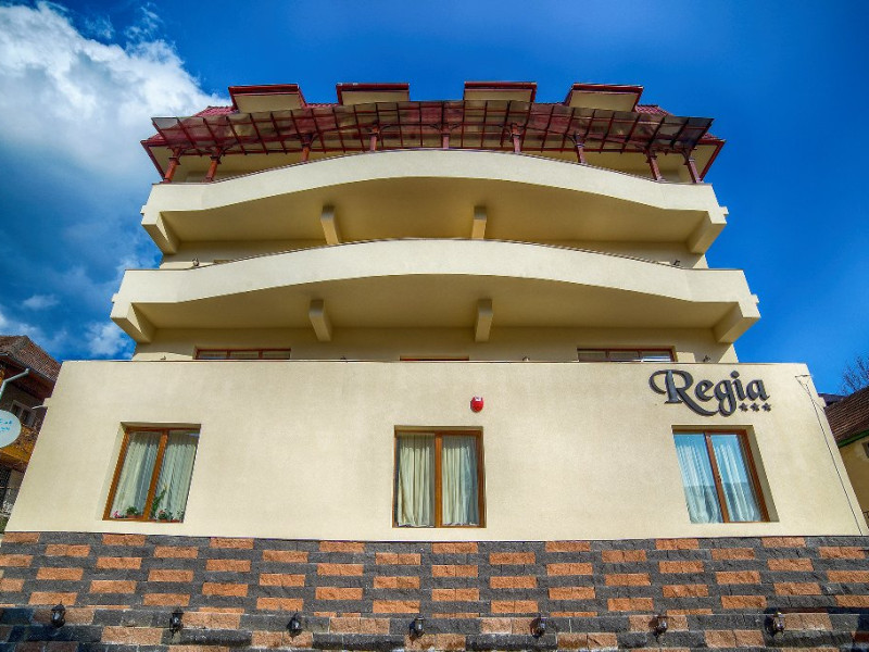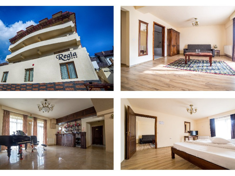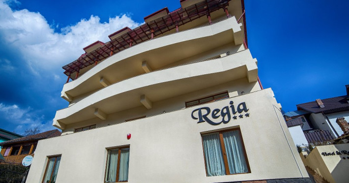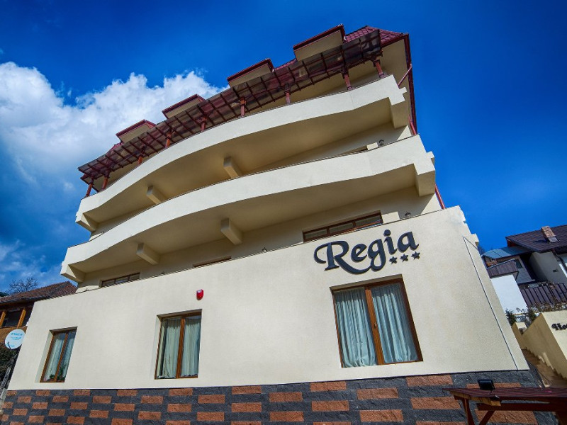 Hotel Regia *** Hotel Regia va asteapta in 2 apartamente si 27 de camere duble si single. Toate spatiile noastre de cazare sunt spatioase si primitoare, innobilate de caldura mobilierului din lemn masiv. Pentru ca serviciile noastre sunt impecabile, va propunem sa petreceti momente speciale la noi, bucurandu-va de: Parcare privata gratuita Piano bar Restaurant-meniu romanesc si international Terasa exterioara Balcoane-terasa individuale Baby-sitter Loc de joaca interior si exterior Wi-fi gratuit Acces persoane cu dizabilitati Serviciu de spalatorie Room-service Receptie deschisa non-stop Servicii de transport Sala de conferinte Animalele de companie sunt binevenite! Restaurantul beneficiaza de peste 100 locuri pe scaune