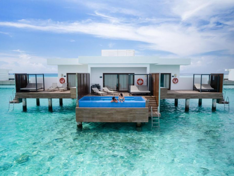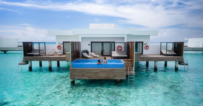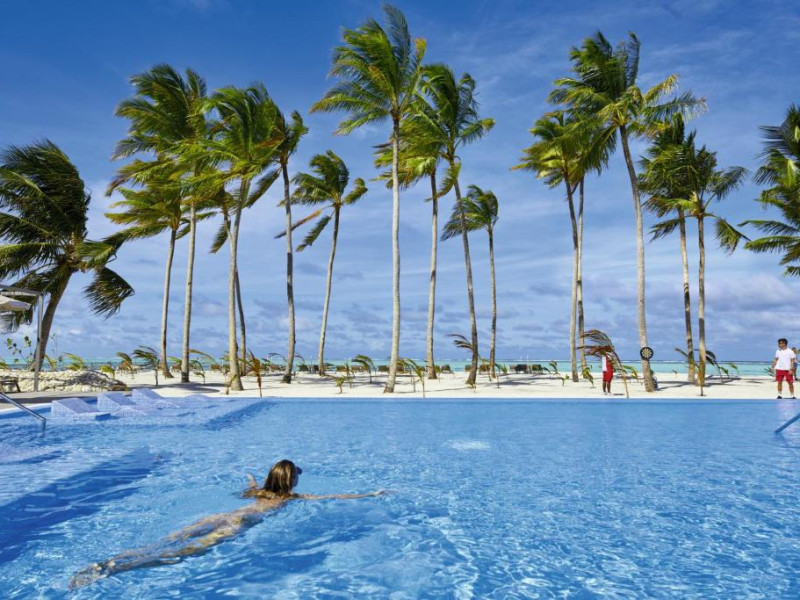 Riu Palace Maldivas- All Inclusive din Atolul Dhaalu are un restaurant, centru de fitness, o piscină in aer liber și un bar. Acest complex de 5 stele are grădină și camere cu aer condiționat, WiFi gratuit și baie privată. Proprietatea are recepție cu program non-stop și oferă room-service.