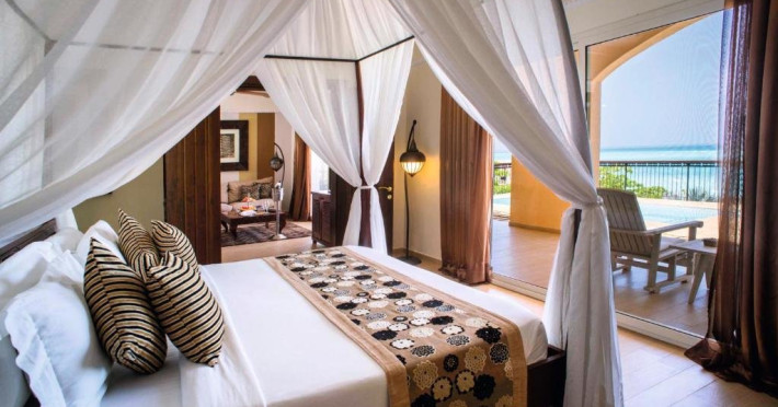 Dotari camere Complexul RIU Palace Zanzibar pune la dispozitia oaspetilor diverse tipuri de unitati de cazare, precum suite junior cu vedere la gradina (34 mp), suite junior (45mp), suite standard (51 mp), suite superioare cu vedere la ocean (60 mp), suite cu jacuzzi privat (90 mp), vile standard (125 mp), vile pe plaja (90 mp).
