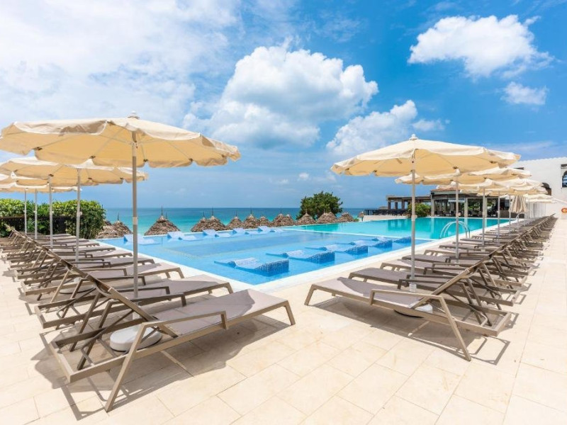 Descriere Parte a grupului RIU Hotels & Resorts, complexul RIU Palace Zanzibar ofera servicii exclusiviste de cinci stele in regim all inclusive si pune la dispozitia oaspetilor facilitati precum trei piscine exterioare, acces imediat la zona de plaja privata cu sezlonguri si umbrele gratuite, programe de divertisment si o serie de activitati sportive.