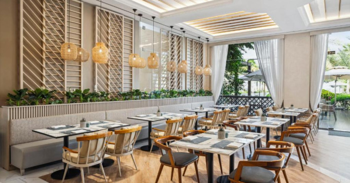 Stațiunea oferă opțiuni de luat masa internaționale, de la preparate internaționale, turcești, mediteraneene și fripturi. Sunt disponibile și un bar Highlights și un SOL Seafood Grill & Bar.