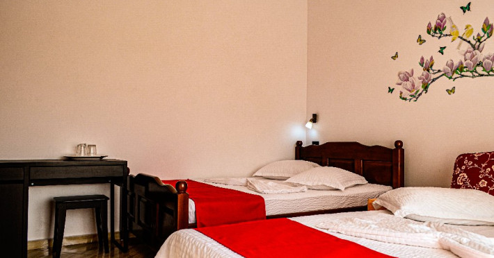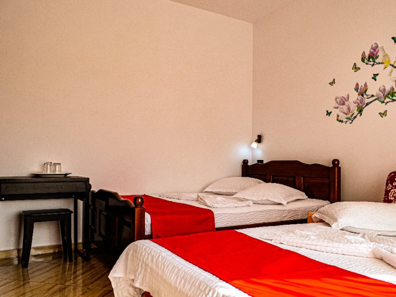6 Camere Duble- situate la etajul 1, dispun de balcon. Suprafata camerei este de 20mp si are pat matrimonial de140/200cm.