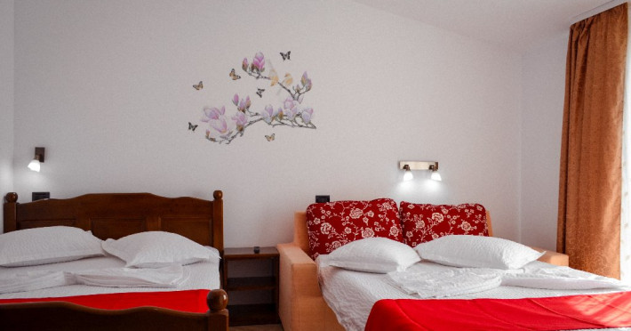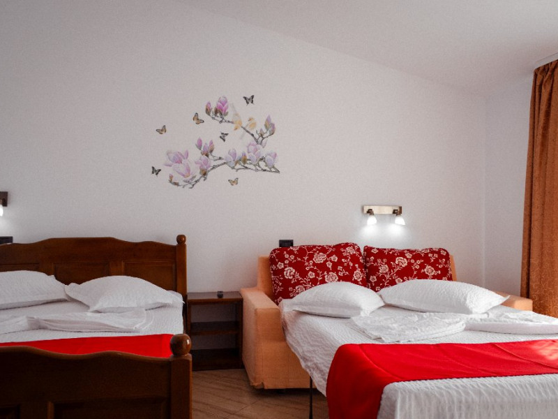 6 Camere Family- situate la etajul 2, dispun de balcon Suprafata camerei este de 20mp dispune de un pat matrimonial 140/200cm si o canapea extensibila 140/190cm.