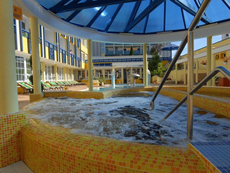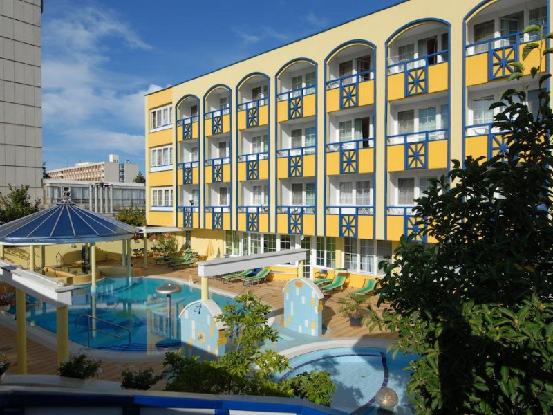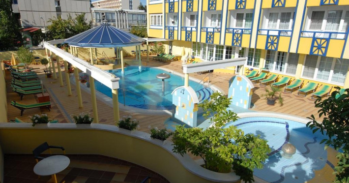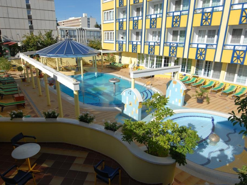 Dotari camere: Camerele sunt dotate cu baie privata cu dus sau cada si produse cosmetice, precum si prosoape si halate de baie, dulap, minibar, TV satelit. Camerele de tip SUPERIOR dispun de aer conditionat. Facilitati HOTEL RUDOLF: Hotelul dispune de un centru spa si de wellness, restaurant a la carte si tip bufet, precum si bar si terasa. Proprietatea pune la dispozitia clientilor sai diverse facilitati de wellness gratuite, printre care se numara un bazin cu apa termala, sauna, piscina si cada cu hidromasaj. Oaspetii pot beneficia de masaj si solar, contra cost. Hotelul dispune de piscina pentru copii, care functioneaza pe timp de vara. La restaurantul unitatii, oaspetii au posibilitatea de a savura bucate alese din gastronomia maghiara, traditionala si internationala. in zilele toride de vara, oasteptii hotelului au posibilitatea de a se 'racori' pe terasa unitatii, aceasta dispunand de o capacitate de 100 locuri. Hotelul dispune si de o sala de conferinta cu o capacitate de 60 locuri, cu lumina naturala, dotata si utilata cu retro-proiector, flipchart, ecran, spatiul fiind ideal pentru organizarea diverselor tipuri de intruniri, sedinte, seminarii etc. Sala de conferinte si facilitatile de banchet sunt disponibile contra cost. Proprietatea ofera acces gratuit la internet WiFi si parcare privata (contra cost 3 Euro/noapte).