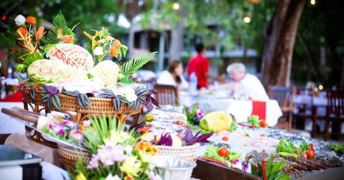 Restaurantul Sand Sea serveste masa la malul mării și oferă o varietate de mancăruri locale și internaționale.