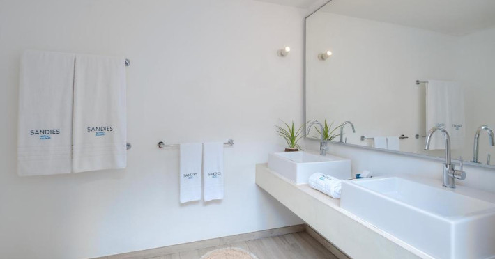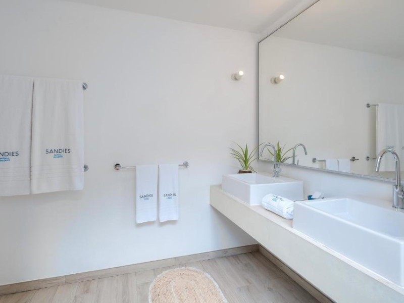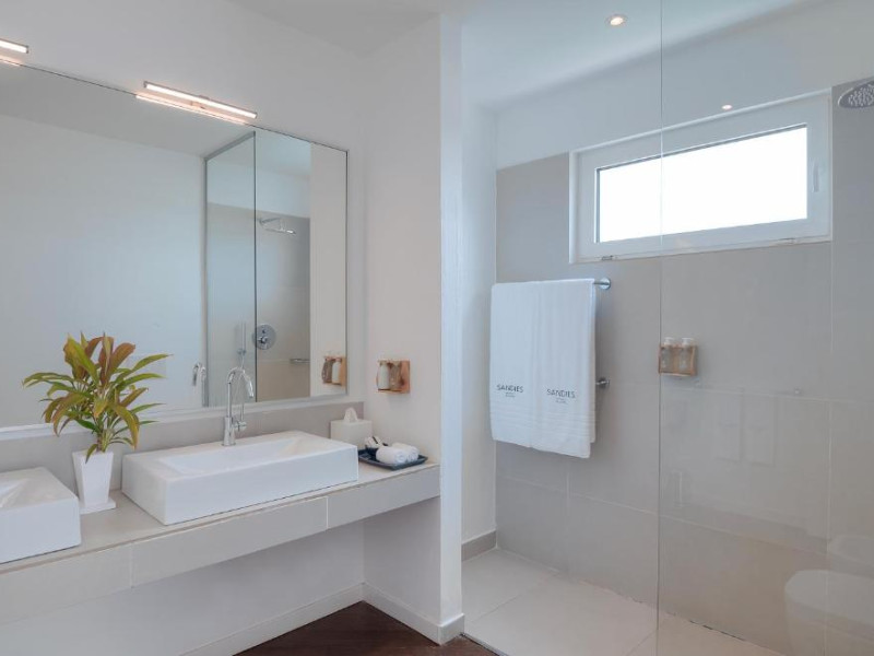 Fiecare cameră a hotelului este prevăzută cu un patio cu vedere la mare. Camerele sunt dotate cu baie privată cu uscător de păr, iar unele unități de la Sandies Bathala includ și o zonă de relaxare.