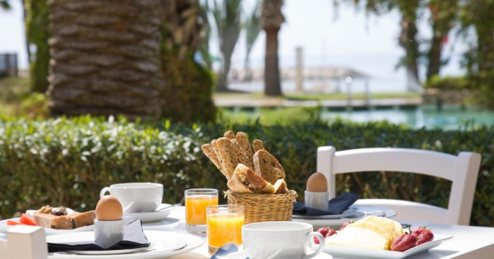 Cina este servită la restaurantul principal, cu vedere la Marea Mediterană. Aqua Bar & Restaurant oferă mic dejun, gustări in timpul zilei și băuturi răcoritoare langă piscină.