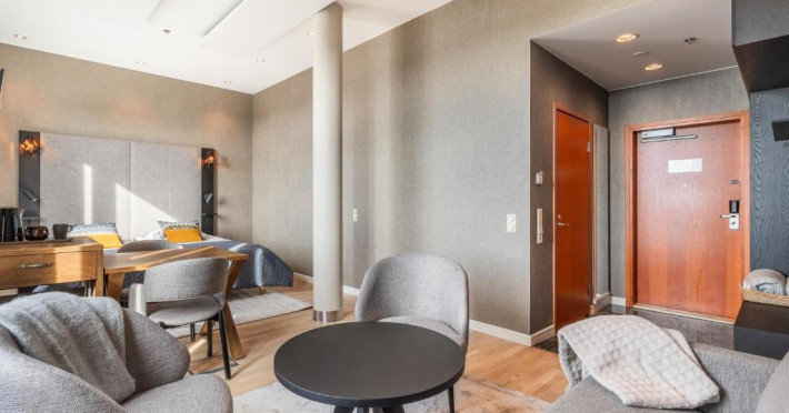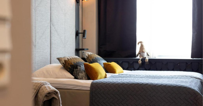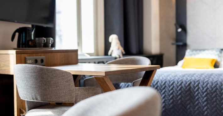 Camerele elegante combină designul scandinav cu accente festive subtile, fiind dotate cu Wi-Fi gratuit, TV cu ecran plat și minibar. Restaurantul hotelului servește specialități lapone și internaționale, iar barul este locul perfect pentru a savura o băutură caldă după o zi de explorare.