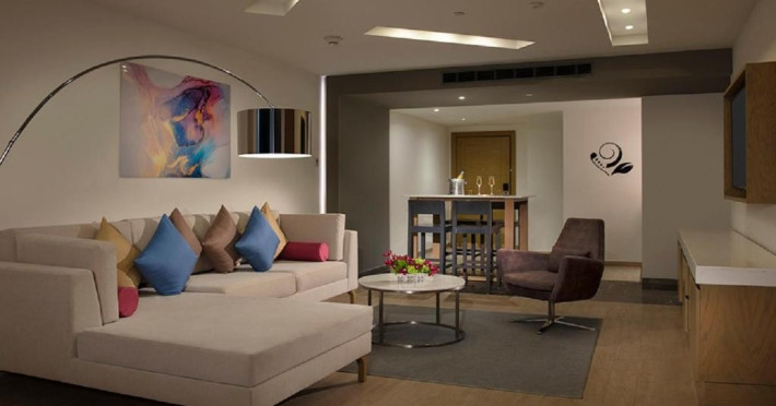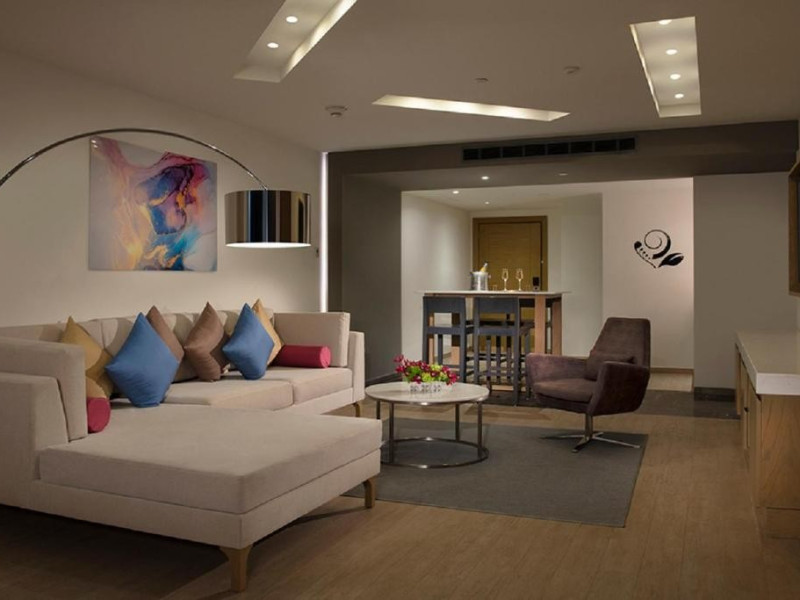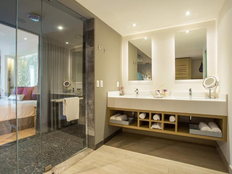 Junior Suite Tropical View Preferred Club: baie/toaleta (uscator de par), minibar alimentat zilnic (apa, bere, sucuri si bauturi racoritoare), aer conditionat, TV/sat, filtru de cafea, halat de baie si papuci, seif, ventilator de tavan, meniu de perne , balcon sau terasa.