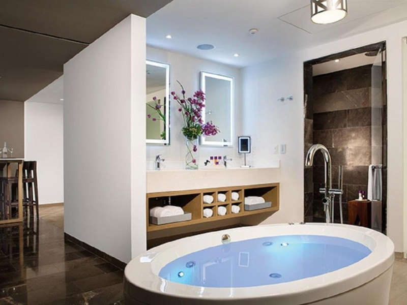 164 de camere, hol, Wi-Fi in tot hotelul, restaurant tip bufet plus inca 9 restaurante in Breathless Riviera Cancun (bufet, franceza, mexicana, italiana, asiatica, cafenea, gratar, tapas, snack bar), 2 baruri plus inca 8 baruri in Breathless, 1 piscina si cada cu hidromasaj, alte piscine din zona Breathless, fitness, centru Spa.