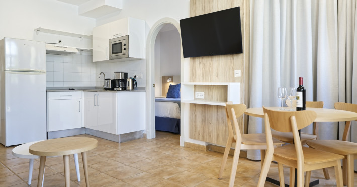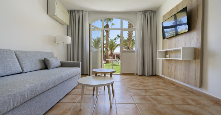 The accommodation Servatur Monte Feliz powered by Playitas is equipped with a 24h reception, a lobby, Wi-Fi, internet access, a lift, a supermarket, parking spaces (limited) as well as a TV lounge with satellite TV. In the outdoor area you will find a garden as well as a supervised salt water pool (open all year), where you can rent pool towels for a fee and sun loungers and sun umbrellas are available for free. For children there is also a children's pool. Furthermore, you can relax outdoors on the sun terrace. Your valuables can be stored in the hotel safe. For very young guests, cots can also be provided. There is also a laundry service available at an additional cost to customers. The energy supply is 110 and 120 Volts. At the hotel reception, tickets are offered for excursions in the area. American Express, Euro/Master Card and Visa are accepted as means of payment. Catering Breakfast is offered from the buffet. Dinner is also served as a buffet. For the meals, there are a buffet restaurant and a bar. Sports & Leisure To keep your fitness up on holiday, there is a gym for guests to use. In the surrounding you can also try your hand for example at water aerobics. In addition, there is an all-purpose sports field in the surroundings of the hotel. If you want to stay on the ball during your holidays, you`ll find the chance to play football or basketball. During your holiday you can also take part in yoga and Zumba courses. There is also the option to play billiards. With beach volleyball and table tennis various other sports offer a lot of variety on holiday. In addition to a tennis court with floodlighting there is also a tennis school. For cyclists there is a bicycle shop. Cycling tours are also organized by the hotel. Furthermore, various water sports such as kayaking and windsurfing are offered in the area. The hotel also offers a games room for adults. Additional information The 4-storey accommodation has a total of 207 rooms. This hotel is gay-friendly. The hotel staff speak English, German, Spanish, Finnish and Norwegian.