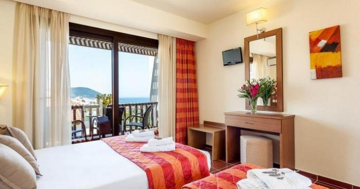 Descriere: Hotelul Skopelos Holiday and Spa este inconjurat de un peisaj foarte frumos, unde marea albastra se amesteca cu verdele padurii bogate, iar facilitatile ofera oaspetilor o experienta extraordinara si multa pace si relaxare. Localizare: Hotelul se afla la 1.4km de portul Skopelos, iar plajele Stafylos si Velanio sunt la 2km. Dotari camere: balcon, patio, vedere la gradin, TV, telefon, canale prin satelit, seif, aer conditionat, birou, facilitati de calcat, zona de relaxare, incalzire, canapea, izolare fonica, pardoseala de gresie/marmura, garderoba/dulap, dus, uscator de par, halat de baie, articole de toaleta gratuite, toaleta, baie, papuci de casa, hartie igienica, frigider, serviciu de trezire Facilitati hotel: piscina exterioara, piscina pentru copii, gradina, terasa, sezlonguri, club pentru copii, restaurant, bar, parcare, internet, room service, spalatorie, seif, receptie, aer conditionat, sala de gimnastica, spa, sauna Website: http://www.skopelosholidays.biz/ro/