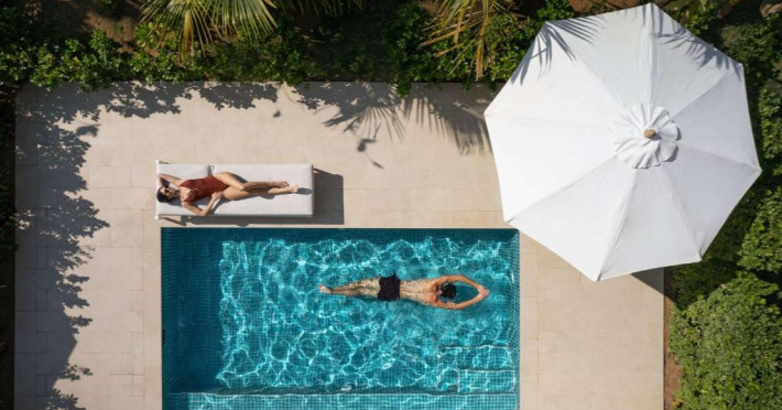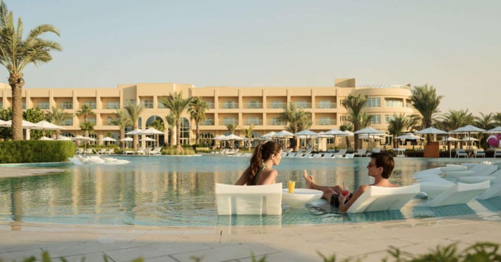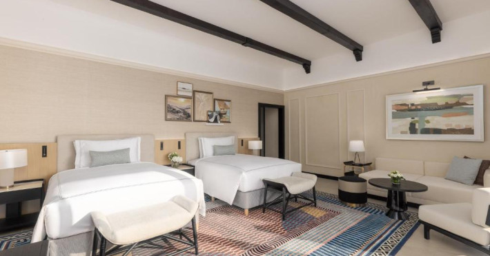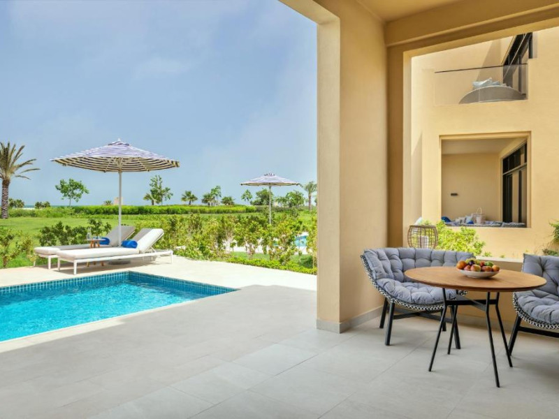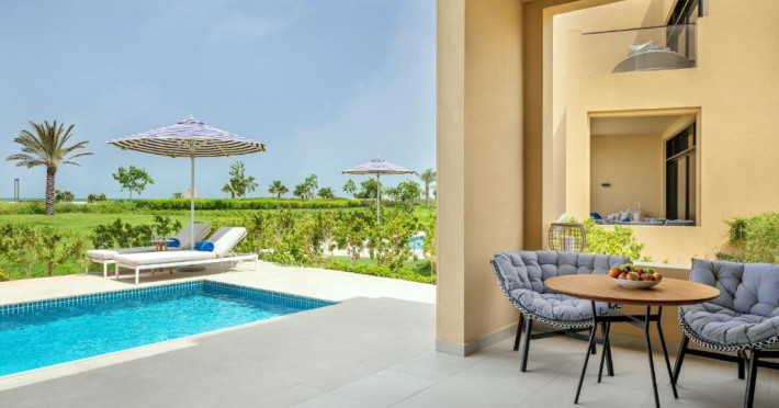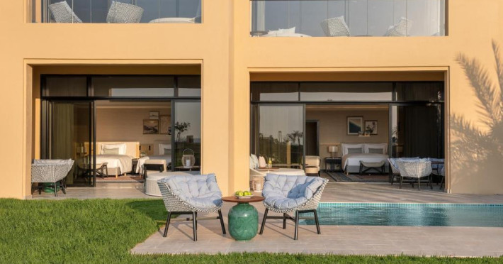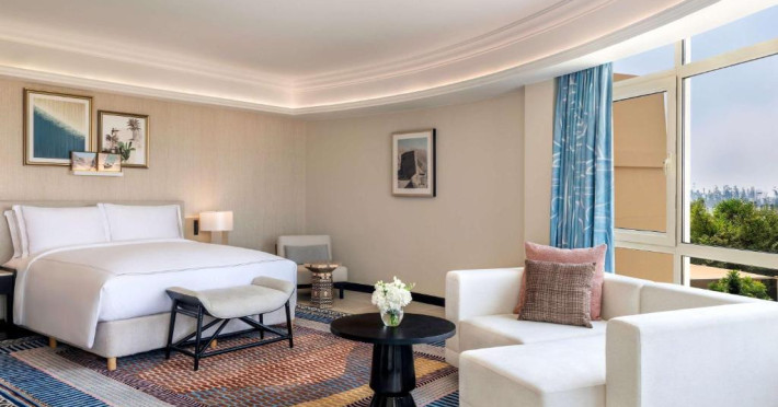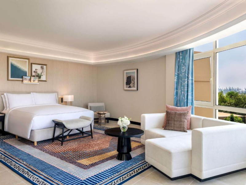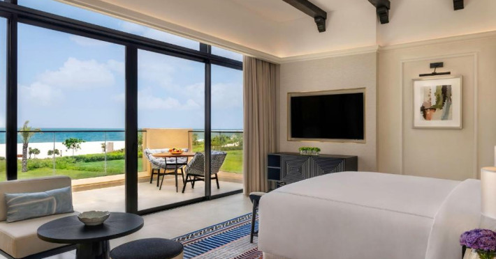 Camerele și suitele spațioase beneficiază de balcoane cu vedere spre mare sau grădini, fiind decorate in nuanțe calde, inspirate din peisajul desertic. Facilitățile de top includ piscine infinity cu vedere panoramică, centru spa cu tratamente signature, terenuri de tenis și multiple restaurante cu specific internațional și asiatic.