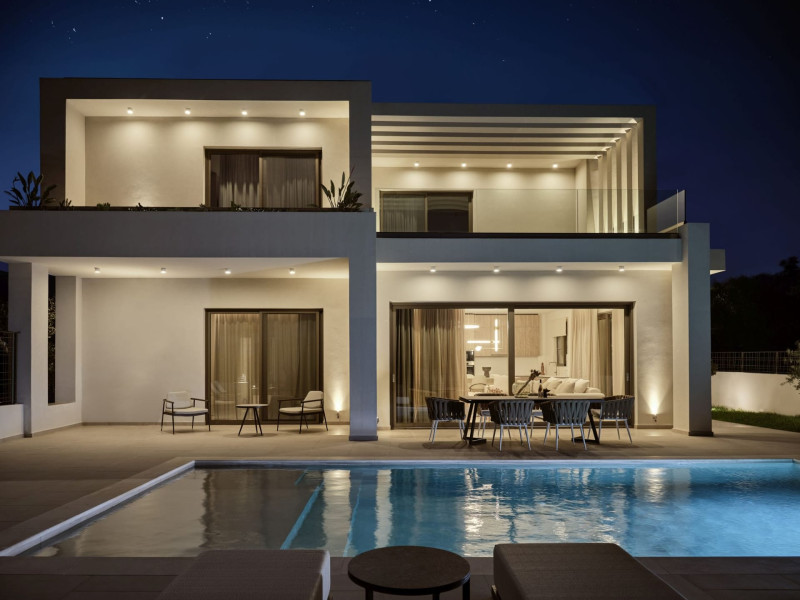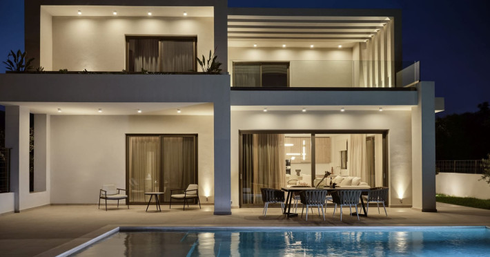 Welcome to Soleil Villas, a complex of contemporary residences that will offer you a refreshing holiday experience. Three uniquely designed villas, one next to the other, are located in Agios Sostis, Zakynthos, just 1 km from the turquoise waters of the Ionian Sea.