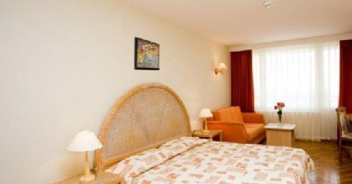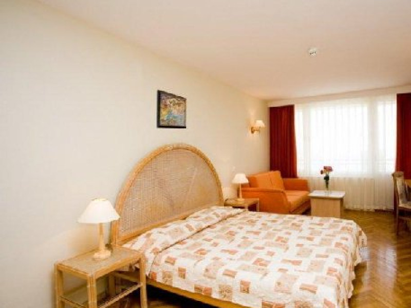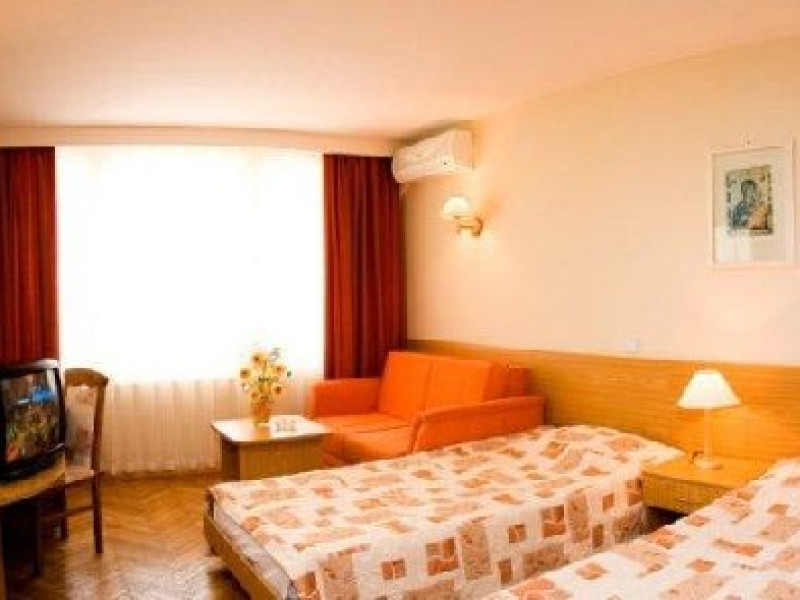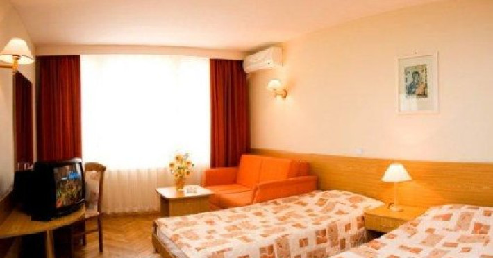 Hotelul ofera cazare in 2 corpuri de cladire a cate 5 etaje cu 1 si 2 lifturi pe care sunt dispuse 178 camere duble si 12 family room, dotate cu: