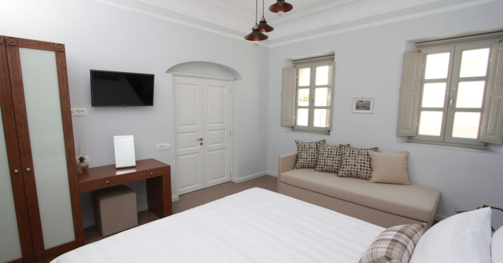 SV Mansion Oia, located in Santorini in the center of the village Oia, within walking distance from Caldera's breathtaking sunset, the most famous sunset on earth.The is a comfortable place to relax and spend time with your family or friends. Also suitable for couples that require independent living space combined with privacy and comfort.The mansion's terrace is an ideal place for wedding ceremonies and wedding celebrations.This property is the place to pass unforgetable holidays.
